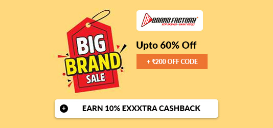 Brand Factory Coupons 2022 - 80% OFF On Online Shopping ... COUPON First Purchase Offer : Extra Rs. 200 OFF On Brand Factory Ongoing Offer Get code More Details (T&C) Shipping + OFF COUPON Get 55% OFF on Everything + Free Shipping Ongoing Offer Get code More Details (T&C) Starting Rs. 135 Deal Avail Boys Bottom Wear starting @ Rs. 135 Ongoing Offer Shop Now More Details (T&C) Best Prices Deal