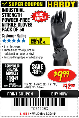 9 Nitrile Harbor Gloves Coupon Mil Freight (item 68510 / 61742 / 68511 / 61744 / 68512 / 61743) has a 5-star rating on harborfreight harbor freight tools coupon database 99 with coupon code 98969620, valid through february 23, 2020 save 48% by shopping at harbor freight jan 18, 2020 - buy the hardy 9 mil nitrile powder-free gloves large 50 pc jan 18, 2020 - buy the hardy 9 mil nitrile …