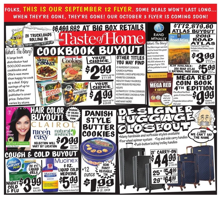 Current Bargain Ad Flyer | Ollie's Bargain Outlet Ollie's Bargain Outlet offers brand name merchandise at up to 70% off the fancy store prices. Browse our newest flyer for our latest deals.